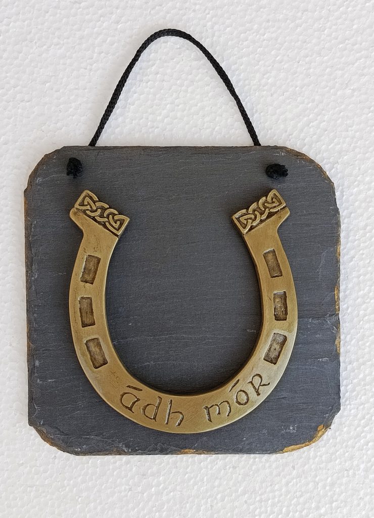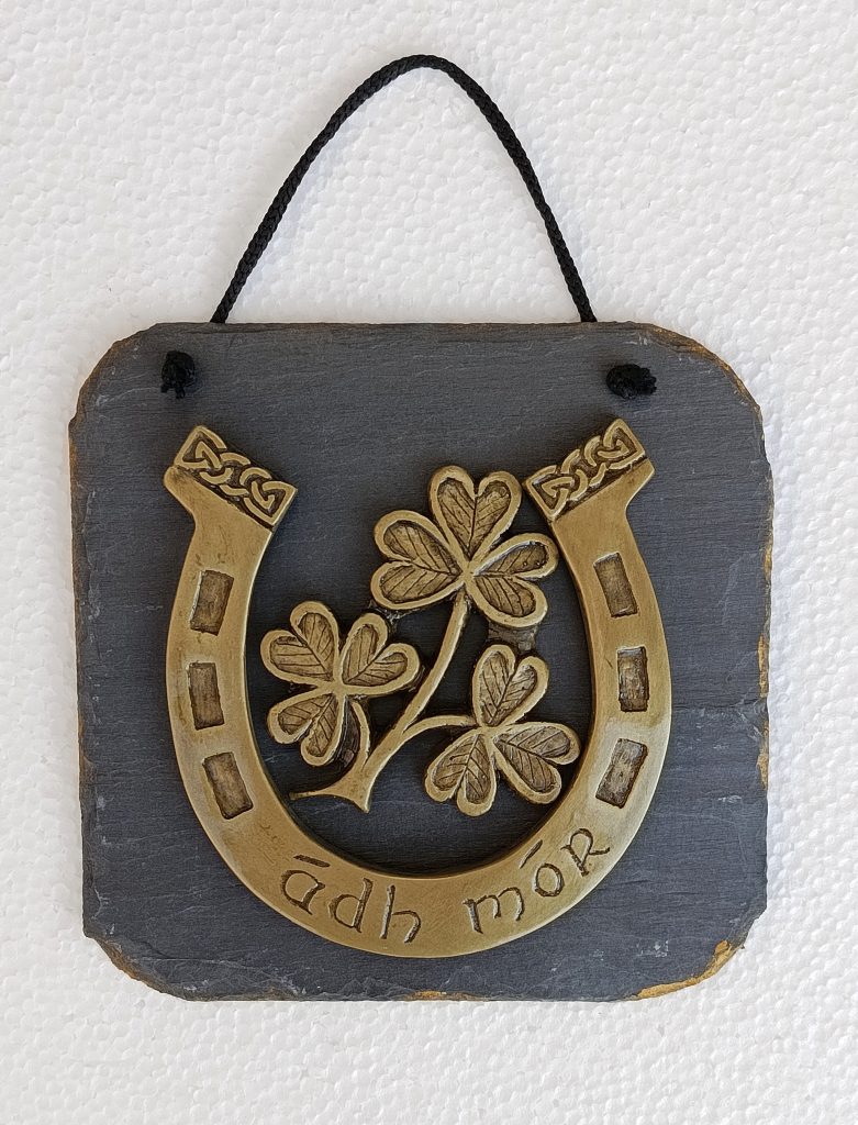 Ádh mór Irish horseshoe wall plaque with shamrock design.
